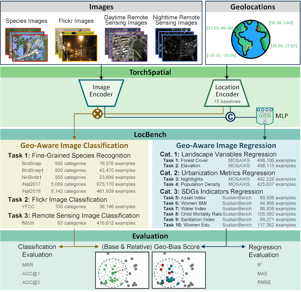 TorchSpatial is a Python package that simplifies spatial representation learning (SRL) by providing tools to encode spatial data and develop geo-aware models. It addresses the challenges of SRL by offering a scalable and reproducible framework that supports various spatial tasks, such as species recognition, satellite image classification, and socioeconomic analysis. TorchSpatial includes 15 widely used location encoders designed for both 2D and 3D data, such as Space2Vec and Sphere2Vec, along with pre-trained model checkpoints for seamless implementation. The package also integrates with popular image encoders, like MoCo-V2+TP, and provides workflows for geo-aware image classification and regression tasks. Users can leverage 17 datasets, including BirdSnap, Population Density, and Nightlight Luminosity, for tasks ranging from land-use classification to predicting socioeconomic indicators. By automating data preprocessing and offering reusable components, TorchSpatial supports rapid experimentation and development of GeoAI models. Future updates aim to expand its capabilities to handle more complex spatial data types like polygons and polylines.