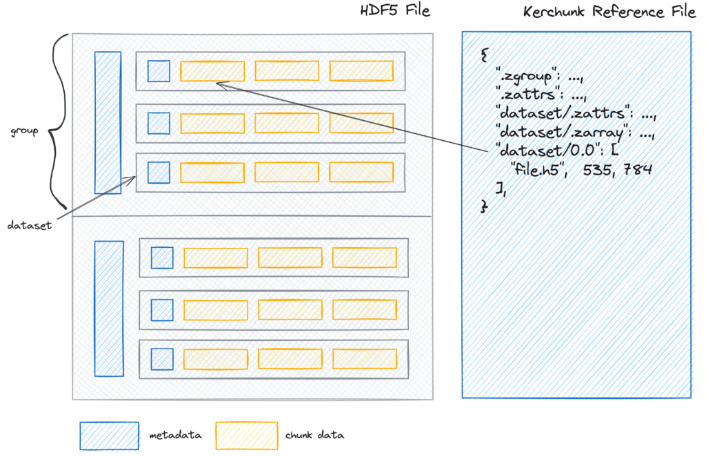 VirtualiZarr is a tool designed for creating virtual Zarr stores, enabling cloud-optimized access to legacy file formats like NetCDF without requiring data duplication. This approach meets the growing demand for accessing archival datasets using modern cloud-friendly patterns. VirtualiZarr works by generating metadata-only representations of legacy datasets. It uses “chunk manifests” to represent data at the array level, referencing byte ranges in the original files in Kerchunk reference file format. Unlike Kerchunk, VirtualiZarr supports writing these virtual arrays as valid Zarr stores, making Zarr a "universal reader" for archival data across various file formats. In comparison to Kerchunk, which focuses on creating fsspec reference files to simplify access to cloud-native formats like NetCDF or HDF5, VirtualiZarr emphasizes direct visualization of Zarr data. This makes it more suitable for tasks involving interactive data exploration.
