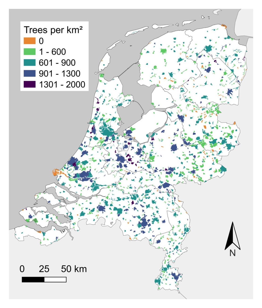 Figure 3. Spatial distribution and density of oak trees in the Netherlands