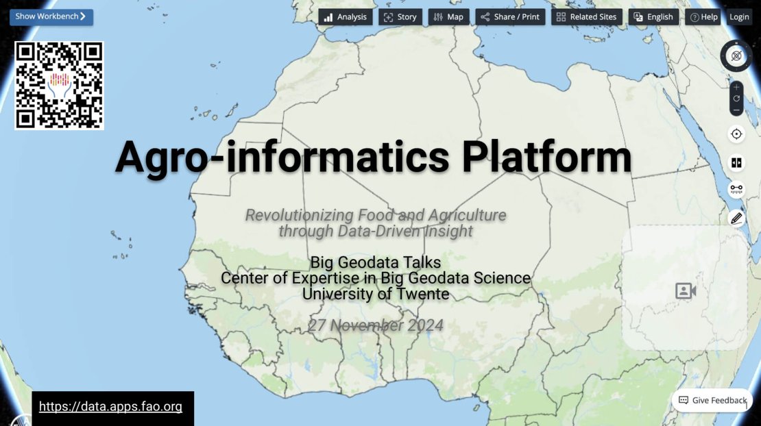This presentation explores how the Food and Agriculture Organization (FAO) is tackling these challenges, building a unified environment for accessing, managing, visualising and analysing diverse datasets. We delve into the approach and architecture, detailing the tools, infrastructure and techniques used to collect, store, process, integrate, federate, and analyse diverse agricultural data sets. We also acknowledge the challenges associated with developing and operating such a platform at scale. We showcase the transformative power of agro-informatics at scale by exploring use cases in early warning, decision support, intervention design, monitoring, and evaluation. Finally, we outline the data governance and operation of the platform.