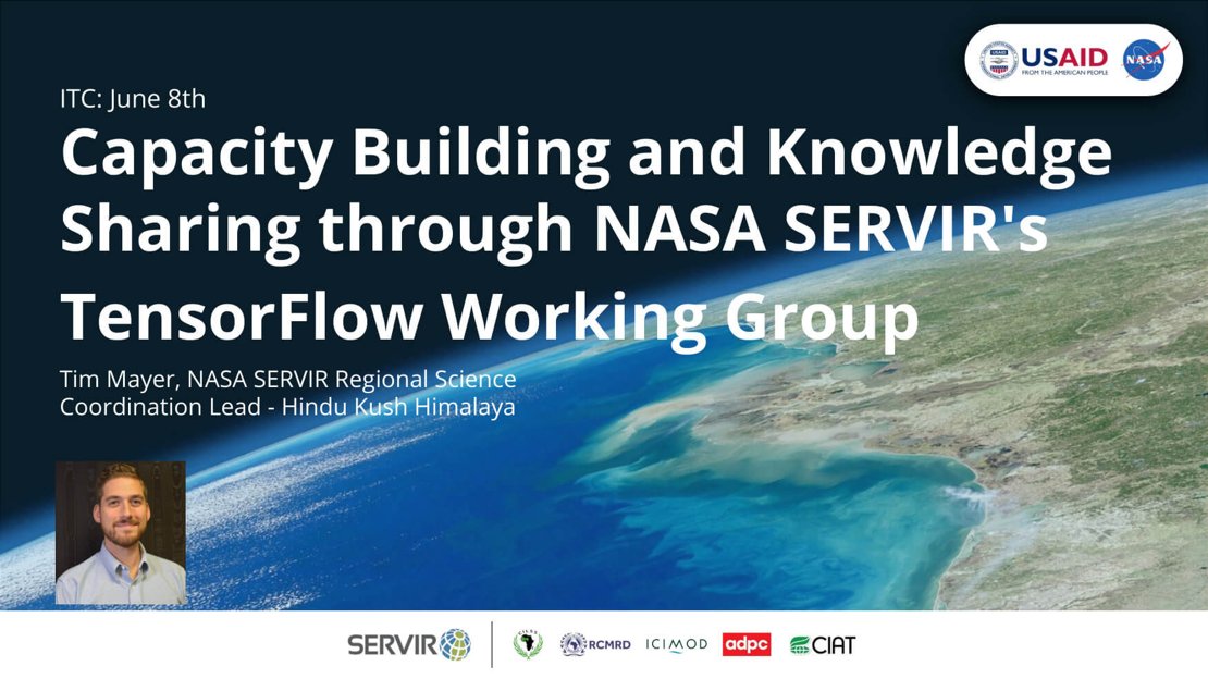 The TensorFlow Working Group (TFWG) has been a spin-off of this initiative. The TFWG serves as a capacity-building forum for members from the SERVIR hubs, NASA Applied Sciences Team members, private sector, and university researchers to collaborate and grow abilities to directly apply ML, DL, and AI techniques.