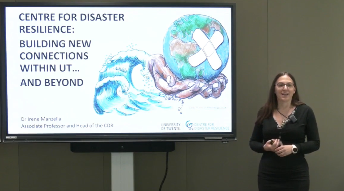 On Wednesday, June 21, the Centre for Disaster Resilience symposium took place at the Faculty of ITC at the University of Twente. Through three sessions, the theme was explored in-depth. Irene Manzella, also the driving force behind the CDR, delivered the opening speech: ‘The CDR would like to be a catalyst of change for all of us who work to create a Disaster Resilience Society and a Sustainable Future at ITC, UT and beyond'.