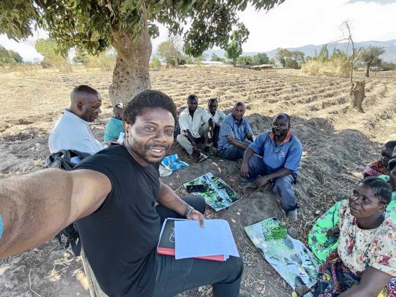 Rogers Alunge holding a focus group meeting with residents of the farming community of Mzokoto-Chisokwo, Rumphi district, Malawi. Discussions centred on the residents’ perspectives of privacy, data protection and other cultural concerns they may have in relation to the flying of drones over their communities and collection of aerial, high-resolution images by humanitarian organizations for disaster preparedness and resilience, but which equally depict their livestock and lifestyle in detail, 28th November 2022.