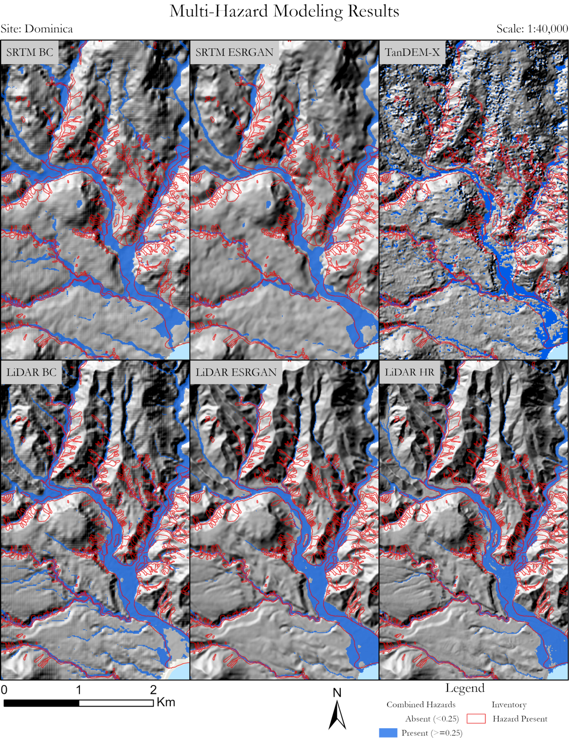 When both Super-Resolution models had learned what high-resolution data should look like based on low-resolution data, I applied the models to areas in Colombia and in Dominica (an island nation in the Caribbean). This way, I gained high-resolution data for these areas, and these datasets I then used for multi-hazard modelling of 21 different scenarios to see if Super-Resolution could actually improve the quality compared to much simpler methods.”