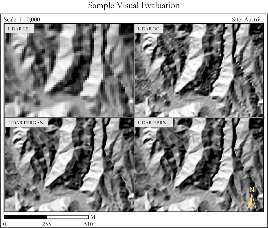 “Of course. Because I was using geoscientific data, I had to develop new functions to minimize errors. That’s still very new, so I think that could be improved. Also, I only used mountainous data from Austria to train the Super Resolution models. If we could add data of countries with flat terrains, like the Netherlands or the United States, the models could potentially perform better. And thirdly, I could not really compare my output to other existing works, because everyone uses different datasets. There are only five to ten published studies doing something similar, but there is no standardized data to compare what model works better. So, I think a standard dataset would be useful.”