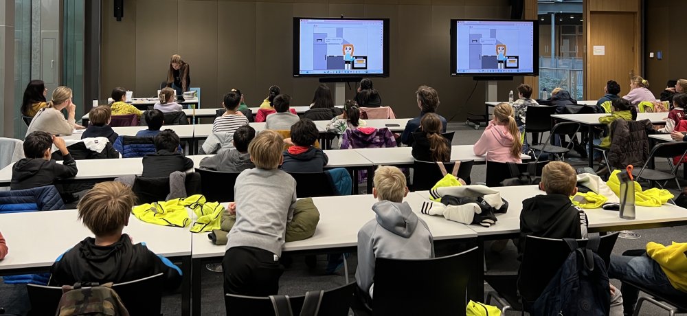 Nora (11 years old) presenting the game she developed on climate change and disasters during the panel led by children.