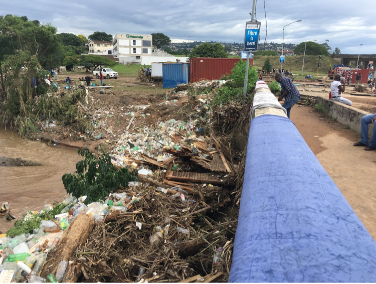 A blocked bridge in the April 2022 floods in the Quarry Road West informal settlement in Durban.