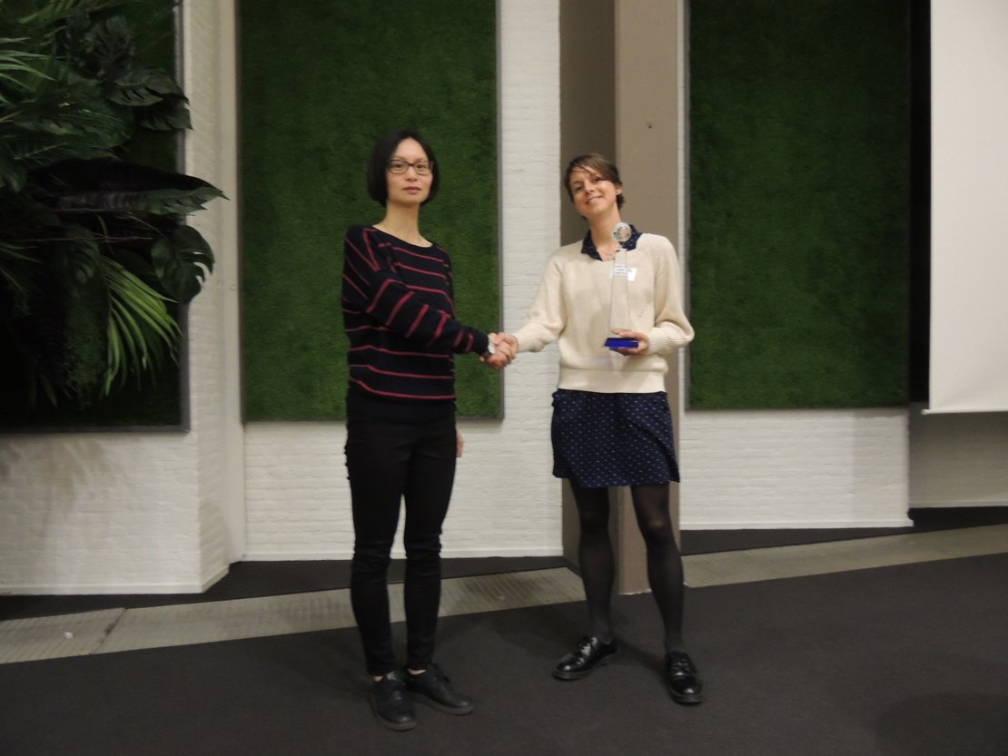 Dr Judith Verstegen of the Local Organizing Committee presented the prize, € 2,500 and a crystal award, during the Netherlands Geodetic Commission (NCG) symposium on 26 April. After the award ceremony, Ling Chang presented her research work. The relevance of Ling Chang's work was already evident in the application of the methodologies from her PhD research on Monitoring civil infrastructure using satellite radar interferometry (InSAR) in the analysis of the collapsed shopping centre 't Loon in Heerlen. Her work has also been applied to the monitoring of line infrastructures such as railway and soil subsidence. This knowledge gives good visibility to the importance of geodesy for society and also shows how a technical subject like InSAR can be directly applied in practice.