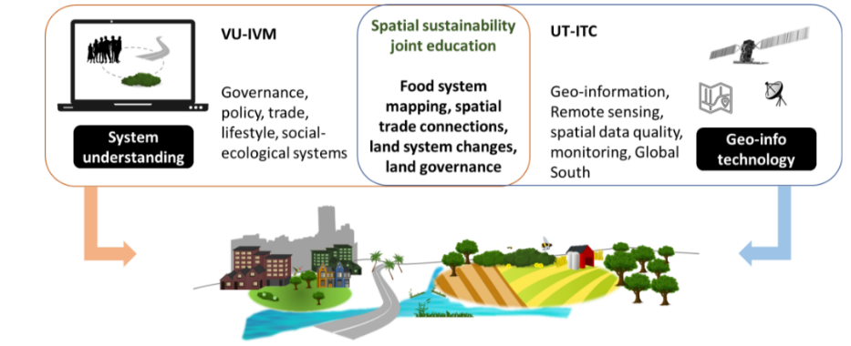 Description: As part of the strategic collaboration ambitions between the Vrije Universiteit (VU) Amsterdam and the UT this project explored the options for joint education on the topic of spatial sustainability. The Institute for Environmental Studies (IVM) of the VU and UT-ITC have strong research programmes on the social and environmental dimensions of land systems and their sustainability challenges. We however identified a gap in our education programmes. Students at the VU get limited training in technical skills to map, model, and monitor land systems in space and time, while students at the UT get limited exposure to social, economic and policy aspects that steer and shape land systems. In order to 1) Improve visibility of the sustainability MSc programmes at the VU and UT for BSc students leading to increased student mobility, 2) Stronger education to address pressing real-life sustainability challenges society faces with respect to land use, and as such 3) increased employability and impact of students aiming to work on these sustainability challenges, we explored the options of setting up a joint BSc minor, exchange MSc course materials, and facilitate joint MSc thesis supervision. The team organized student workshops at the VU and UT, spoke with teaching staff, reviewed education materials and the many administrative documents relevant for the organization and implementation of education. The project findings, SWOT analyses, and recommendations and requirements to move forward will be presented to the two universities soon.