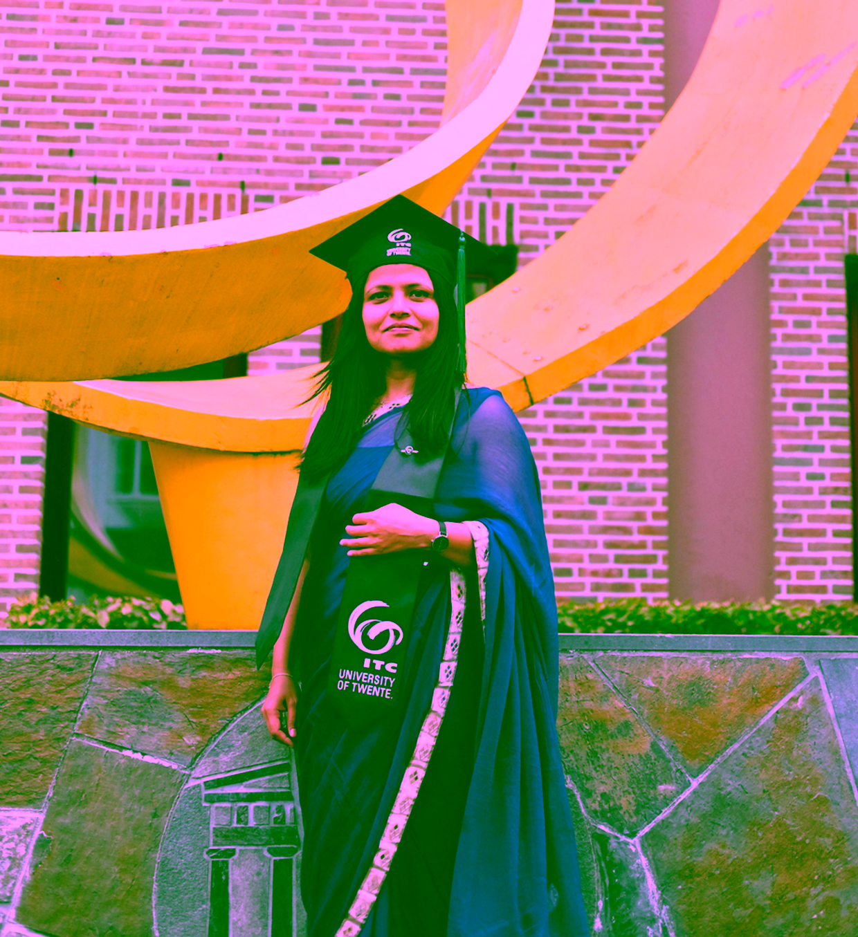 I have so many good memories at ITC. The most profound memories would be all the classmates coming together to celebrate each other's birthdays. I also loved coffee breaks where I shared ideas, motivational words, laughter and conversations. I compensated for my first year living in lockdown in the second year by attending parties, food festivals, sports week and other socialising activities. I feel proud to be associated with a world-renowned educational institute like ITC. ITC is diverse yet connected. ITC has provided a platform, resources, connection with research communities and most importantly, with friends from around the world who will remain associated with my life.
