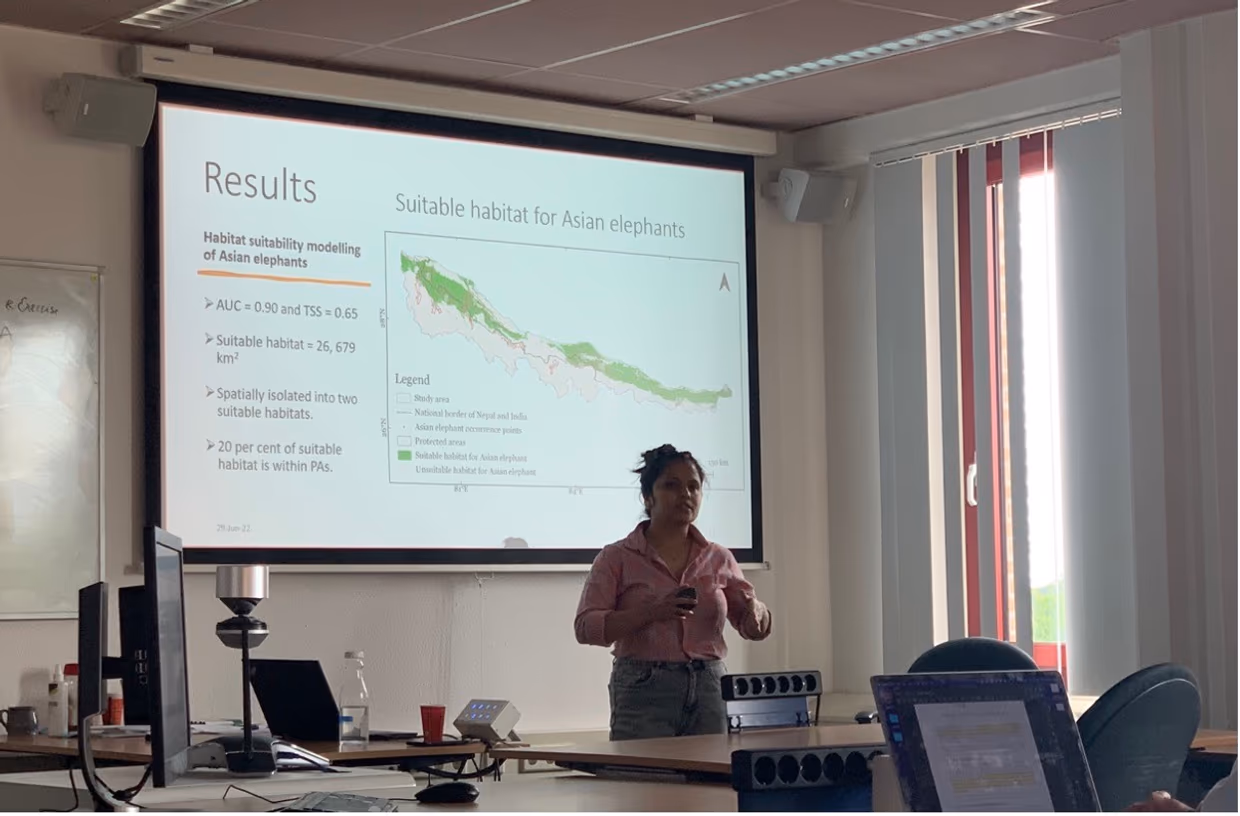 The cross-border regions between Nepal and India are the natural habitats for Asian elephants. However, this region has experienced dramatic land cover and land use changes due to human pressure and infrastructure development over the last several decades. Habitat loss and fragmentation drive elephants closer to human settlements and cause more frequent human-elephant conflicts. I was interested in understanding the dynamics of suitable habitat distribution of elephants in these transboundary landscapes and the spatial distribution of human-elephant conflict within the suitable habitat of elephants to mitigate human-elephant conflict. Fortunately, I found a supervisor who motivated me to develop my interest into a thesis.