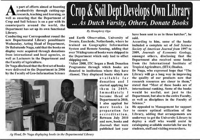 Read the interview of Dr. Babatunde Nuga, who is an ITC Alumnus and now Head of the Faculty of Crop Protection and Soil Science at the University of Port Harcourt, Nigeria, by Humphrey Ugo in the UNIPORT Weekly of August 29, 2011
