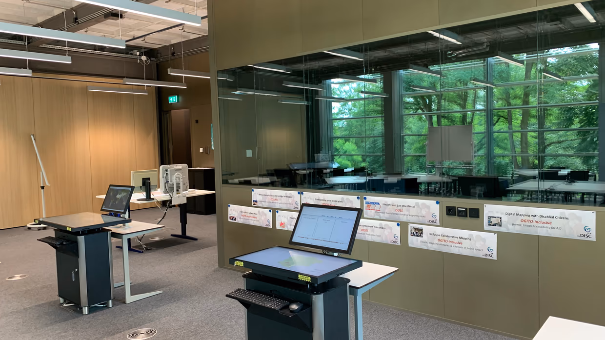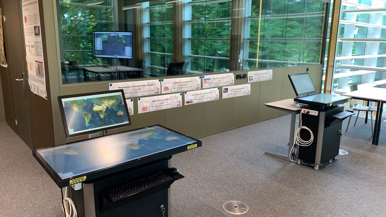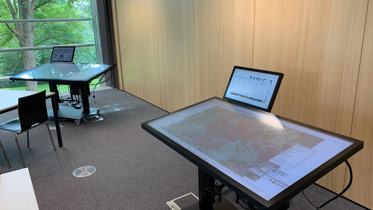 The DISC (Design and Interactive Space for Co-creating) at the UT is a place where people meet to share their knowledge and perspectives, learn about contemporary challenges and co-design a future that we can all be excited to turn into reality. Through the power of spatial visualisation, communication, and co-creation of knowledge the DISC aims to support the translation of visions and world views of the future into concrete strategies, plans, and designs. Interactive geospatial tools work as boundary objects that facilitate the communication and knowledge co-creation in inter- and transdisciplinary processes to achieve a fair and inclusive collaboration of all parts of society.