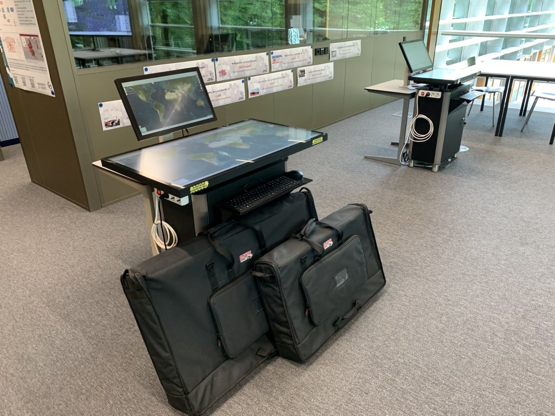 Some elements of The DISC can be transported for use at other locations and even abroad to form a mobile DISC. Two of the DISC touch tables can be disassembled and transported as a portable version. For abroad applications, there are two smaller touchscreens available. If you are interested in booking The DISC for your project, company, government, or local group please contact Johannes Flacke or Cheryl de Boer.