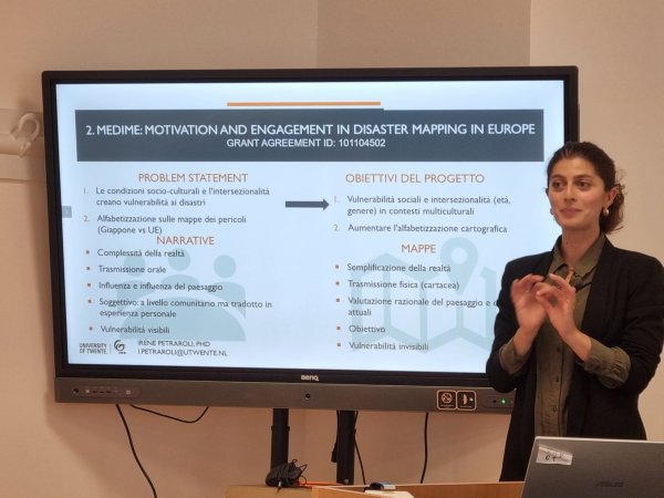 "We should not be seeing this number of people dying in 2021 from floods. It just should not be happening." Hydrologist H. Cloke’s words echoed the widespread shock following the death of 243 people in some of the wealthiest and most technologically advanced countries in the world during the European 2021 floods. Extreme weather events such as floods and heat waves are expected to increase in frequency and intensity in the future (IPCC). As communities grow more exposed to hazard risks, in addition to state preparedness and urban resilience, it is urgent to address public involvement in disaster preparedness (DP) measures to promote individual preventive behaviour (SFDRR 2015-2030). Despite EU advances in Disaster Maps (DM) tools and disaster management procedures of community professionalisation, DM are used mostly by expert stakeholders but are seldom user-friendly for citizens, and current DP initiatives suffer from limited public motivation and engagement. People do not exist in a vacuum, and social and cultural dynamics play a crucial role in defining risk and motivation to engage in DP. Thus, DP strategies should include a systematic assessment of the impact of socio-cultural and spatial factors on people’s motivation and engagement in DP to inform better disaster training. The Motivation and Engagement in Disaster Mapping in Europe (MEDiME) project proposes a theoretical framework of motivation and engagement and a new disaster training based on interactive HM to investigate motivation and engagement in DP and the use of DM for foreign residents. An original socio-cultural and spatial model to understand people’s motivation to participate in DP initiatives based on the Japanese DP research and measures will be implemented, for Japan has always been at the forefront of DP for high levels of community engagement and mainstreamed DM. Project results will increase the impact of EU DP strategies, and inform useful DM uses for the broader public."