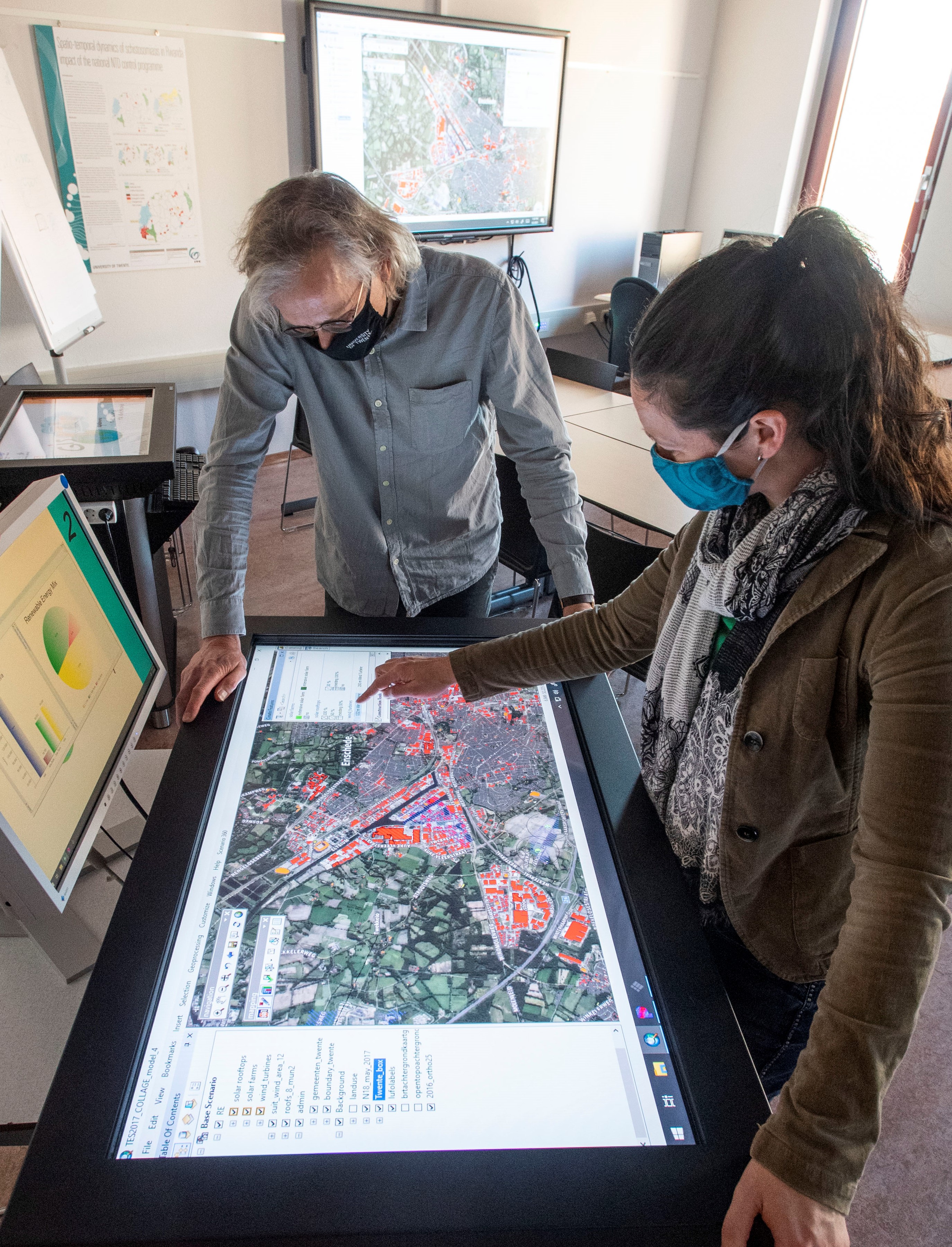 The energy transition challenge is linked to challenges of sustainable agriculture and food production, protection of nature and biodiversity, and adaptation to the changing climate. Discussions about central issues such as where to place new windmills or solar parks amongst these other societal values can become quite complex. This is where a big map table at the University of Twente can come in handy.