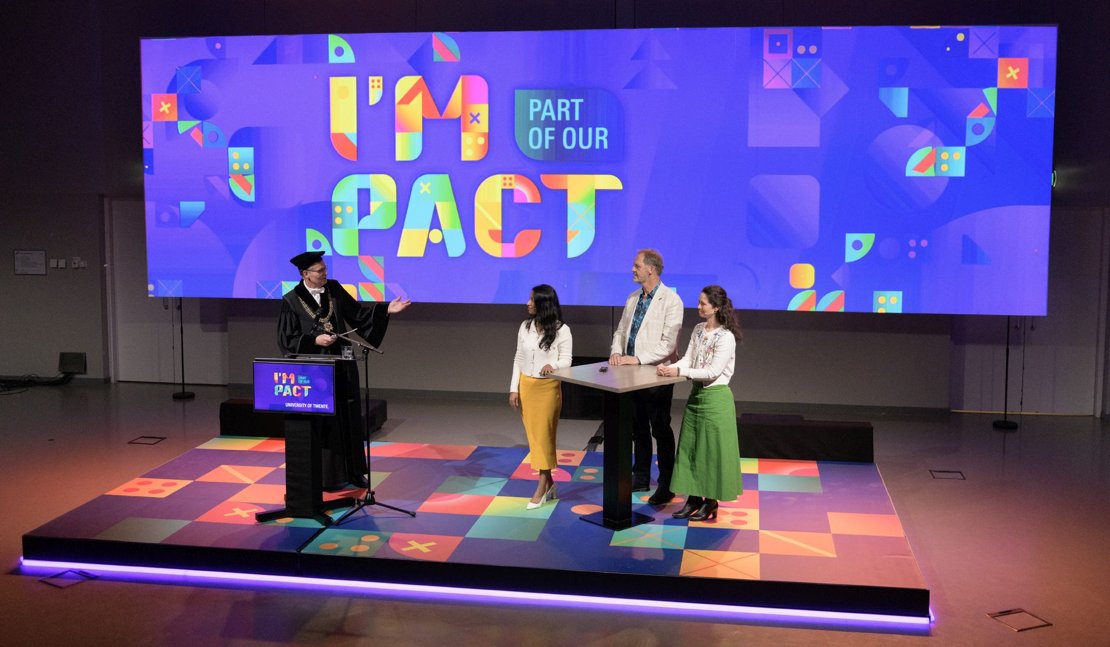 The hall in the Waaier building was filled with staff, students and other guests who came to celebrate its 61st anniversary with the university. They were treated to a festive, packed but above all inspiring programme.