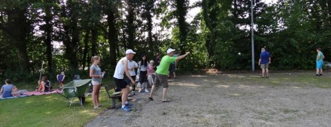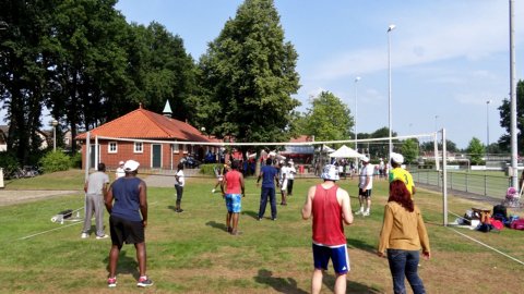 Jeu de Boule had changed location, from the sunny side into the shade. Not the traditional French Plane trees but Dutch oak trees provided shade. However that side of the pitch was covered with grass and so it seemed not all teams were prepared to concur this vegetation. The defending champions, Roelof and Roland - the Chicos Cojones, won all their matches and won the cup again. First they defeated Bitterballen with 13-0. The Bitterballen team annually participate and bring their own set of (bitter)balls. Despite the special preparation (food and liquor) they lost their first two matches. Only against Bikkels, de laatste loodjes they uplifted themselves for a single victory. The only student team, CZ – were they sponsored or is this an acronym of their names Zhang and Chen, started of really good only to be beaten by the 2015 champions. Also Sneu de Boule won one match. The conclusion is justified that behind Chicos Cojones it was a battlefield.