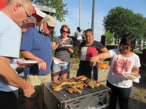 At around 6.30 PM the BBQ were fired up by the staff from Korfbal vereniging Rigtersbleek for around 120 hungry athletes and supporters. Competition results were debated, salad, meat and French bread consumed when the winners of all competitions were called forward to receive their rewards.