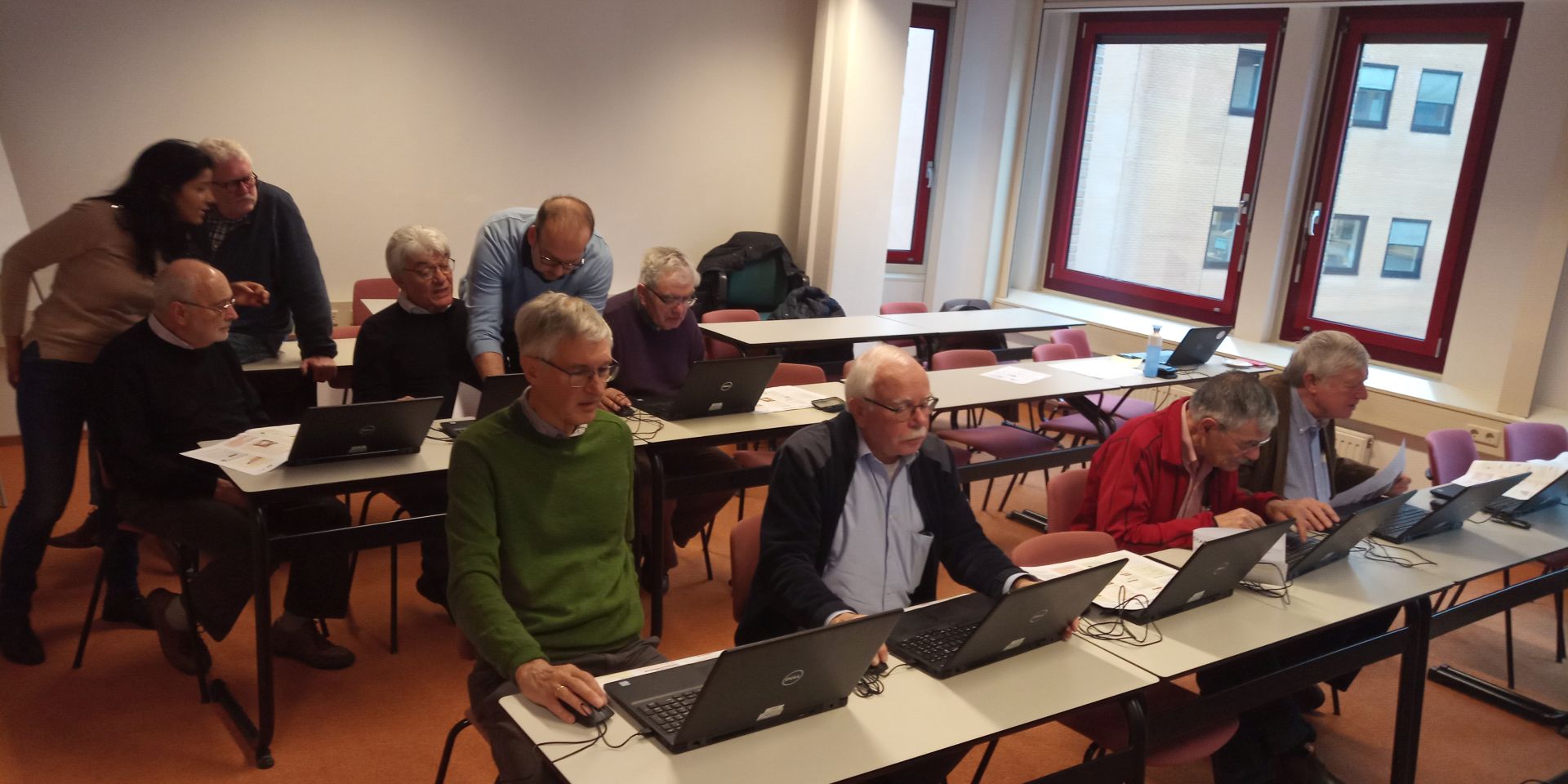 Na afloop van de lezing hebben de deelnemers daad bij woord gevoegd en zijn de oud ITCers zelf aan de slag gegaan met het gebruikersvriendelijke programma. Er moest wel even een account worden aangemaakt op de aanwezige laptops en men kon aan de slag gaan in een van te voren uitgekozen doelgebied. In de korte tijd die beschikbaar was is er slechts een klein gedeelte daadwerkelijk gerealiseerd. Maar met het aangemaakte account kan men ten aller tijden zelf thuis doorgaan. Het was een leerzame ochtend met een goede link wat men ook op het ITC mee bezig is.