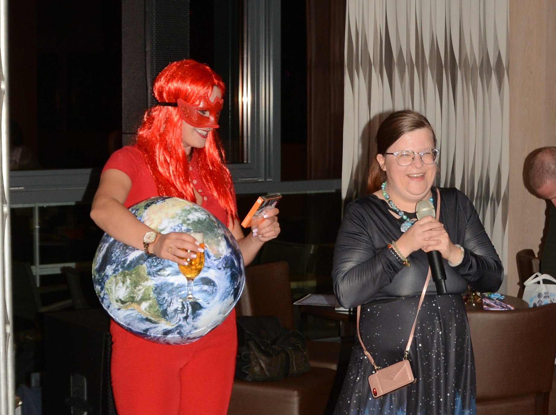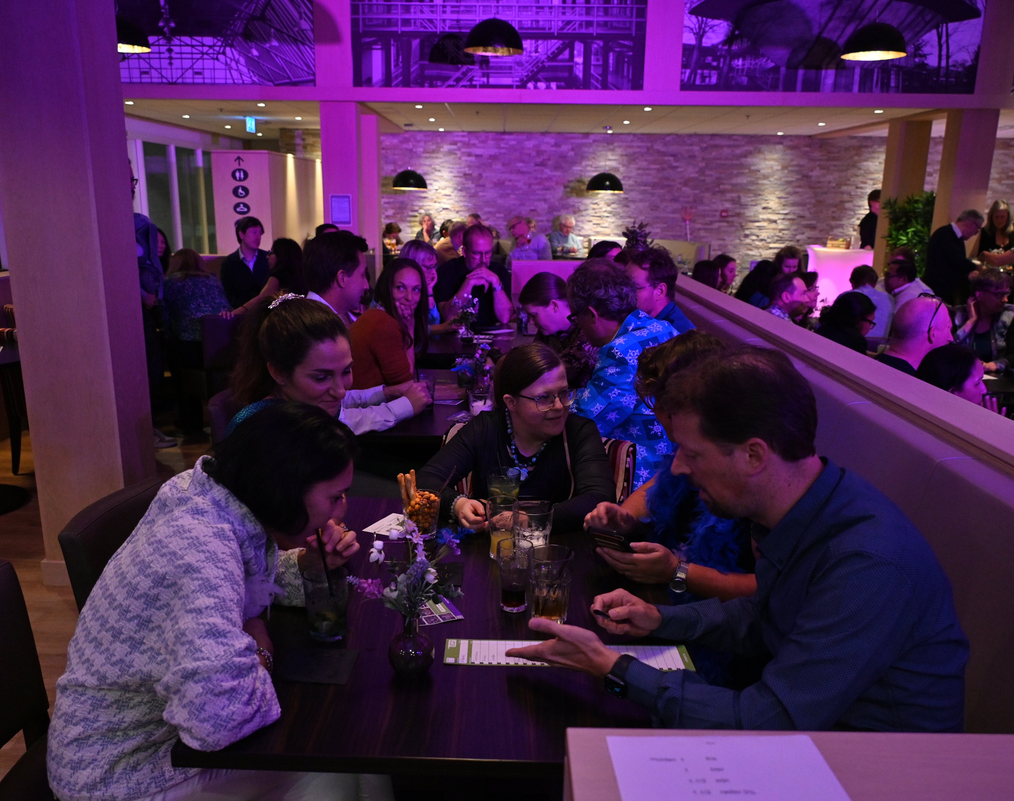 During the evening everyone was challenged to vote for the best costume through Wooclap. Soon it was clear that the woman in red, Nona, was at the top of the chart. Wan, who had welcomed many of the guests at the entrance as Neptune/Aquarius, but had changed clothes after the opening, finished 2nd. Both received a nice gift from the chair of PVI.