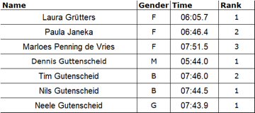 When the queue for the BBQ was forming, there were still some enthusiasts ready to run 3 rounds around the sports area for ht e 1mile. Just second before the start dad Dennis decided to accompany his family who completely registered. Thus the group of runners was composed of Paula and Laura and the family Penning de Vries/Gütenscheid (Marloes, Neele, Tim, Nils and Dennis). Even without a glorious win they would have been elected ITC Family of the year (although dad decided to run away from his pack while mom supported the youngsters). Dennis won the overall and male competition (being the only male had an advantage) in 5min44. Paula and Laura initially fought a tough battle but Paula then started cruising away from Laura finishing the 1 mile in 6min05.