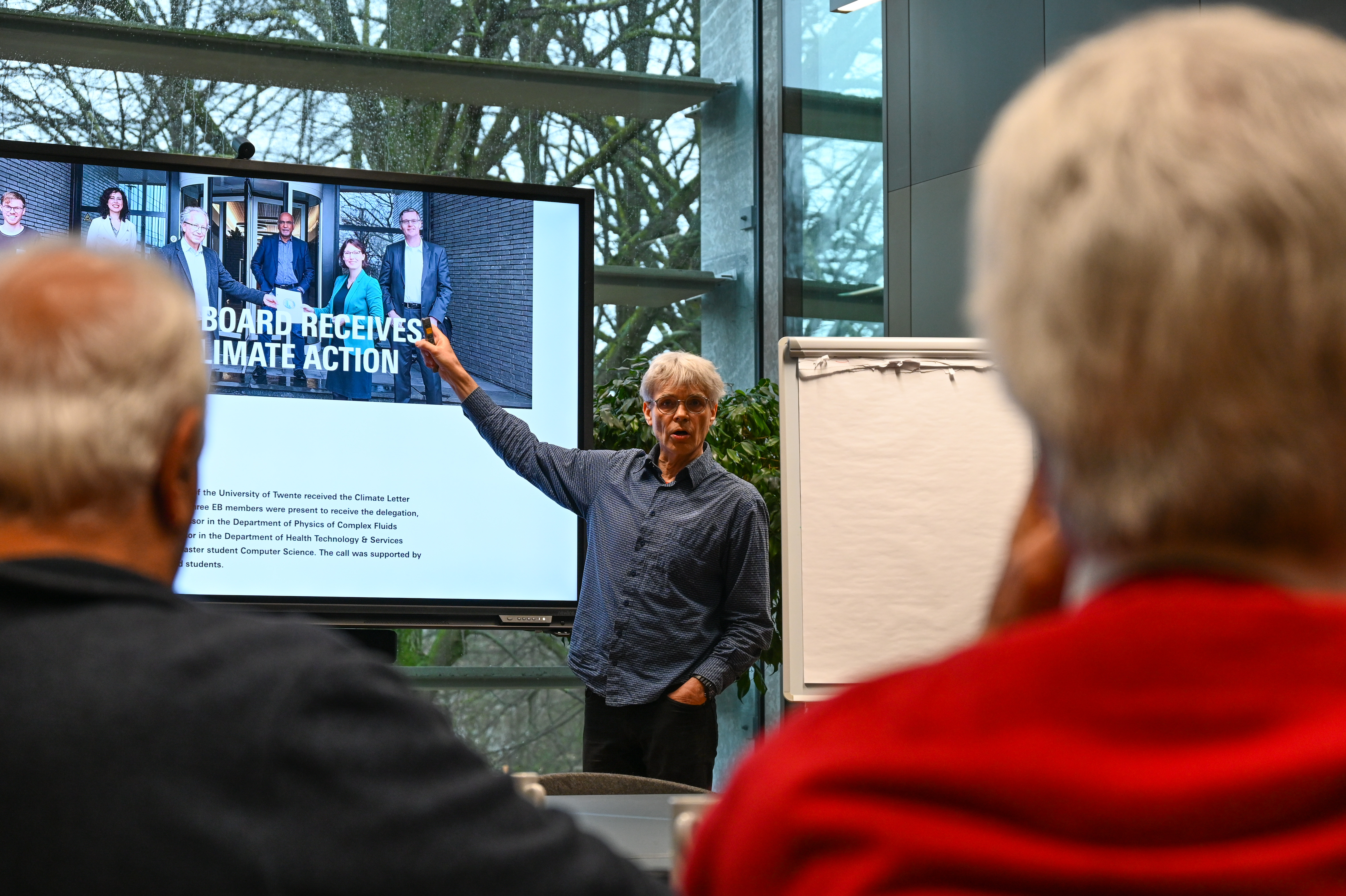 Yuri Engelhardt then gave a presentation about the UT climate centre: Its mission is to empower students, staff, and society to maximize their impact on the world's climate challenges. ITC staff is heavily involved in the centre, such as Cheryl de Boer (director) and the speaker, Yuri Engelhardt. They are committed to a transdisciplinary approach in research and education, impact, community, and communication. The main objectives are to empower students to contribute effectively towards the climate crisis, organize climate-themed strategic education options, and collectively address climate mitigation and adaptation challenges through a GeoTechnoSocial approach in both research and education. More information can be found here: https://www.utwente.nl/en/sustainability/climate-centre/
