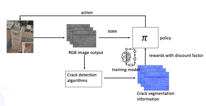 Effective methods such as non-destructive evaluation (NDE) and structural health monitoring (SHM) are studied to improve structure reliability and prevent catastrophic failures. With technologies developing, Unmanned Aerial Vehicles (UAVs) arise coming along with many advanced algorithms to monitor bridges. The inspection process using UAVs is accelerated without traffic closure while also minimizing disruption to the targeted bridge structure.