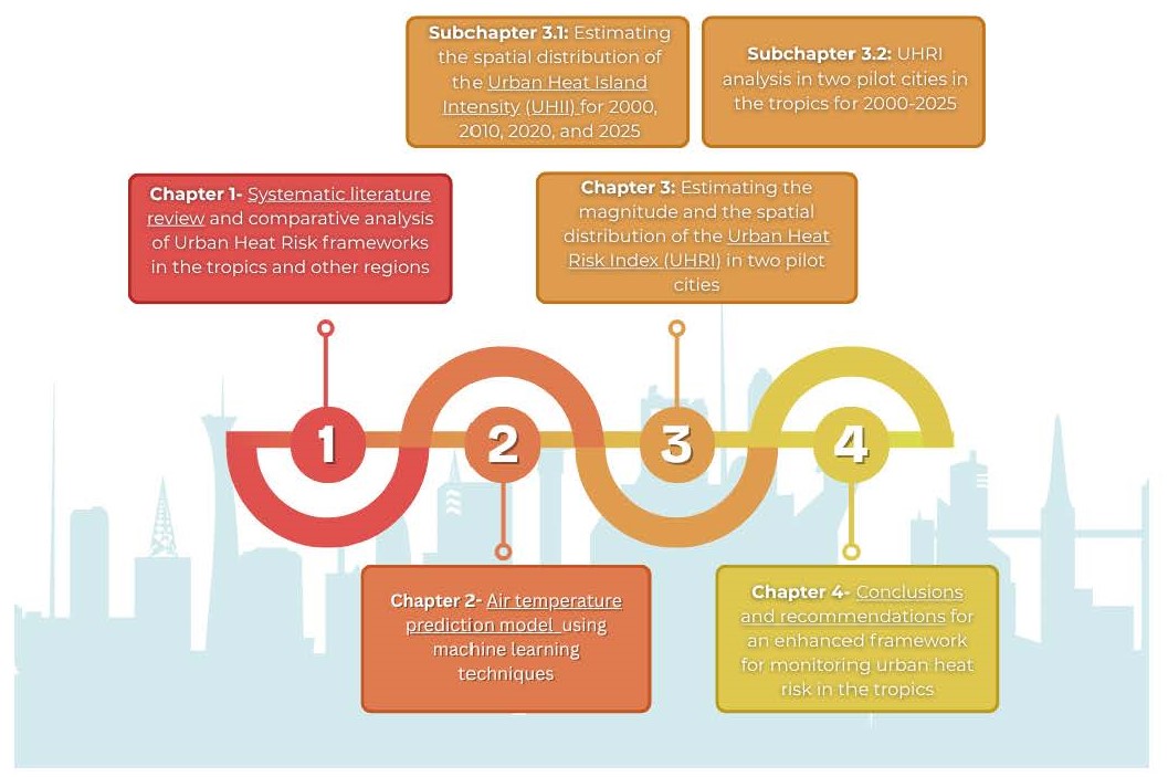 Such frameworks have been designed specifically for their focus cities and have also been extensively developed in high income countries (HICs) in the Northern Hemisphere, in contrast with the low and middle income countries (LMICs) in the tropics. Recent research highlights that the tropics are already exposed to extreme heat, and with an increasing tendency to have more frequent long heatwaves compared to other regions. The tropics also face challenges in adapting to hazards, partly because 85% of the world’s lowest income inhabitants live in this region. Nevertheless, data from various Earth Observation (EO) satellites allow for sub-daily monitoring of land surface temperature (LST), and that is especially relevant for regions like the tropics where national weather data are not easily accessible. Such LST data are key components of urban heat risk frameworks and are therefore crucial for understanding and mitigating the UHI effect.