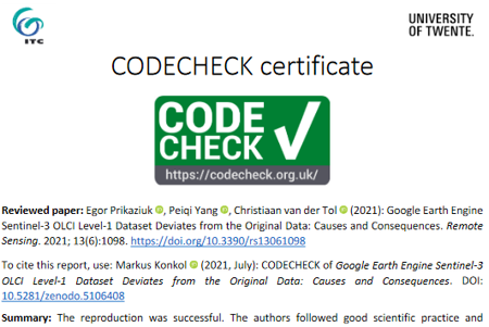 Reproducible research refers to achieving the same results (e.g., tables, figures, numbers) as reported in the paper using the same source code and data. Since many ITC researchers publish articles that report on results based on a computational analysis, reproducible research is a relevant aspect of their work. However, several studies have shown that providing access to the underlying source code and data does not guarantee reproducibility. The analysis is often not executable or produces results that do not match those from the article. The reasons for that are manifold. To put it simply, a computational workflow that runs on your computer does not necessarily run on someone else’s computer. CODECHECK addresses this issue.